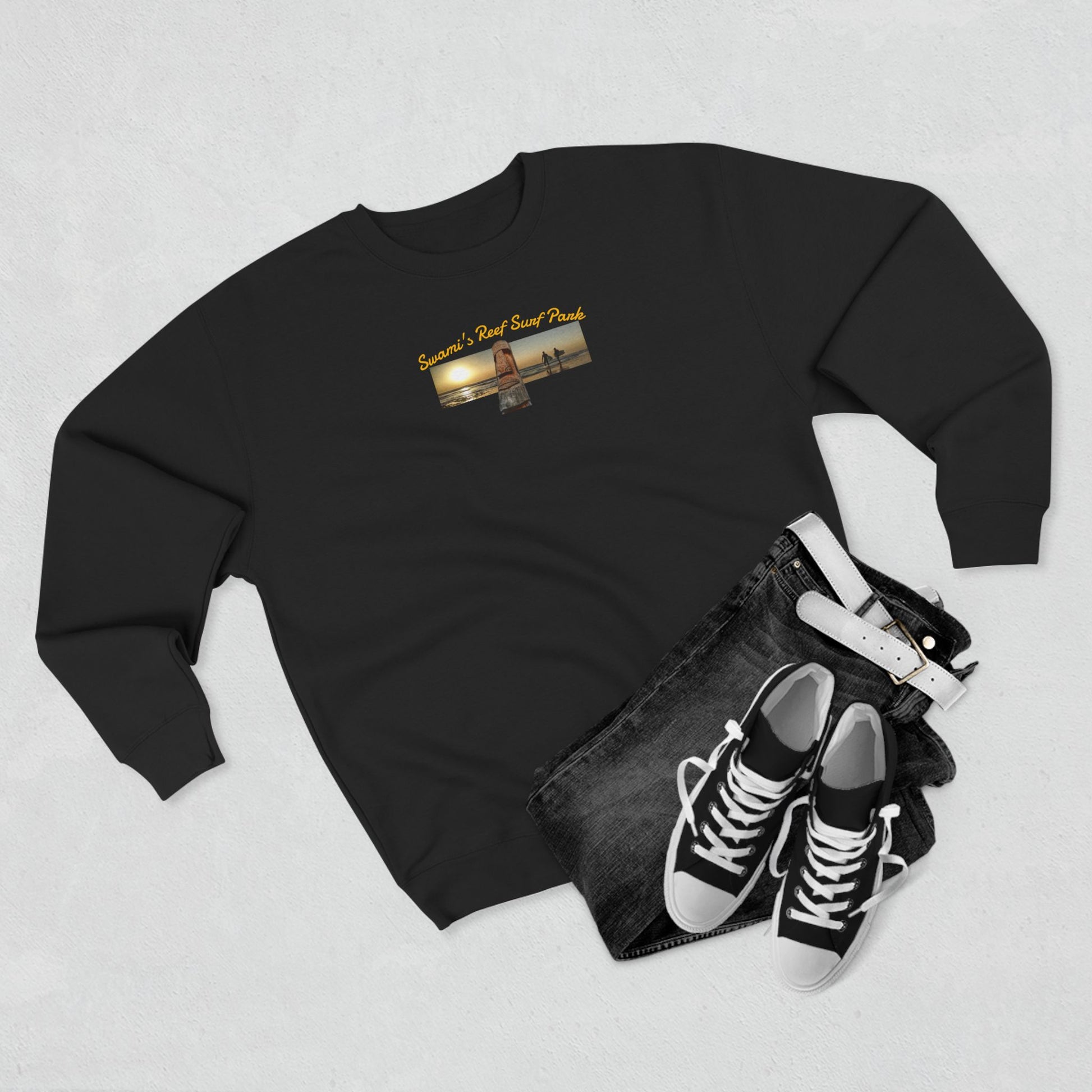 Swamis Vibe Encinitas California JSE Designs #1. Custom Designed Swamis Surf Park Crewneck Unisex Sweatshirt
