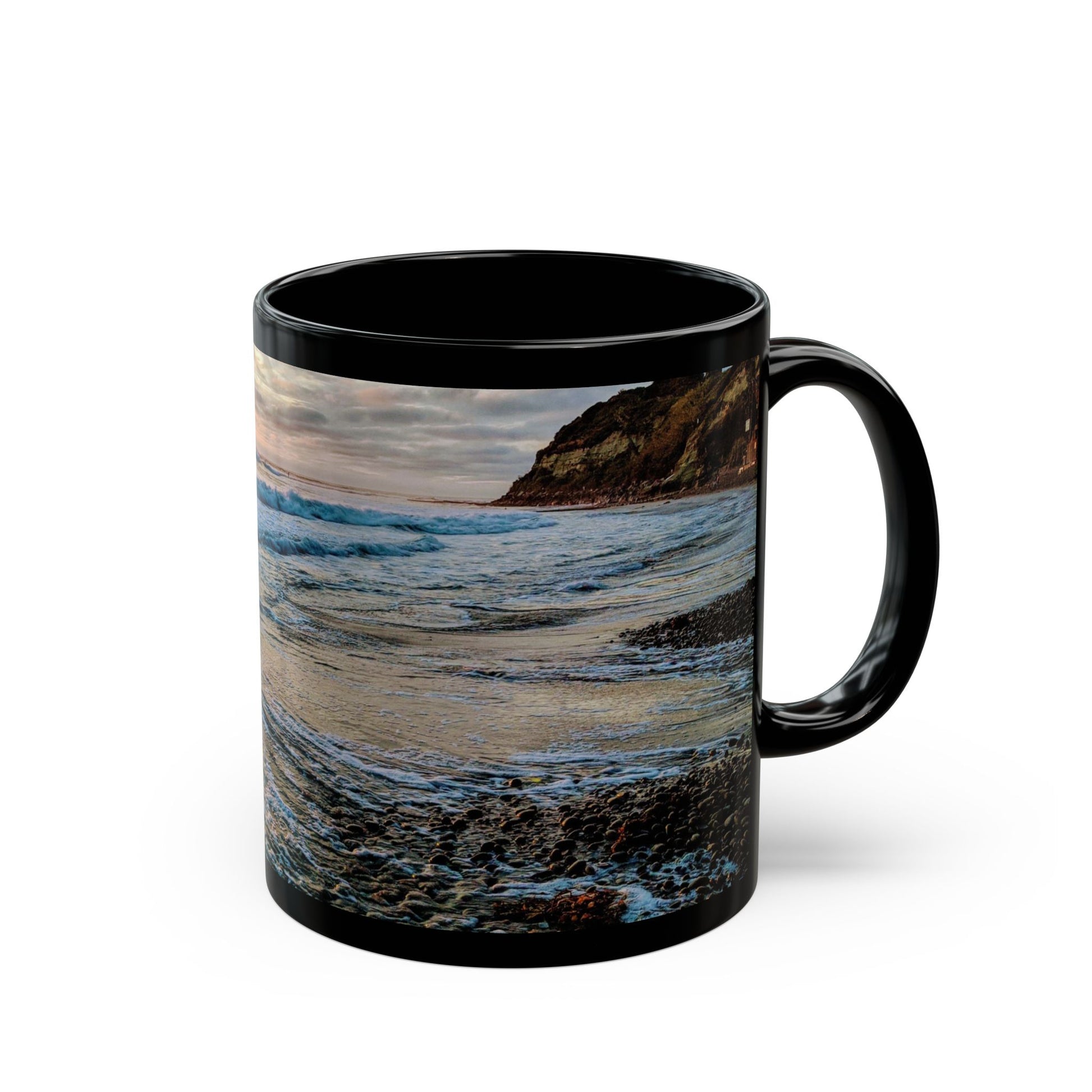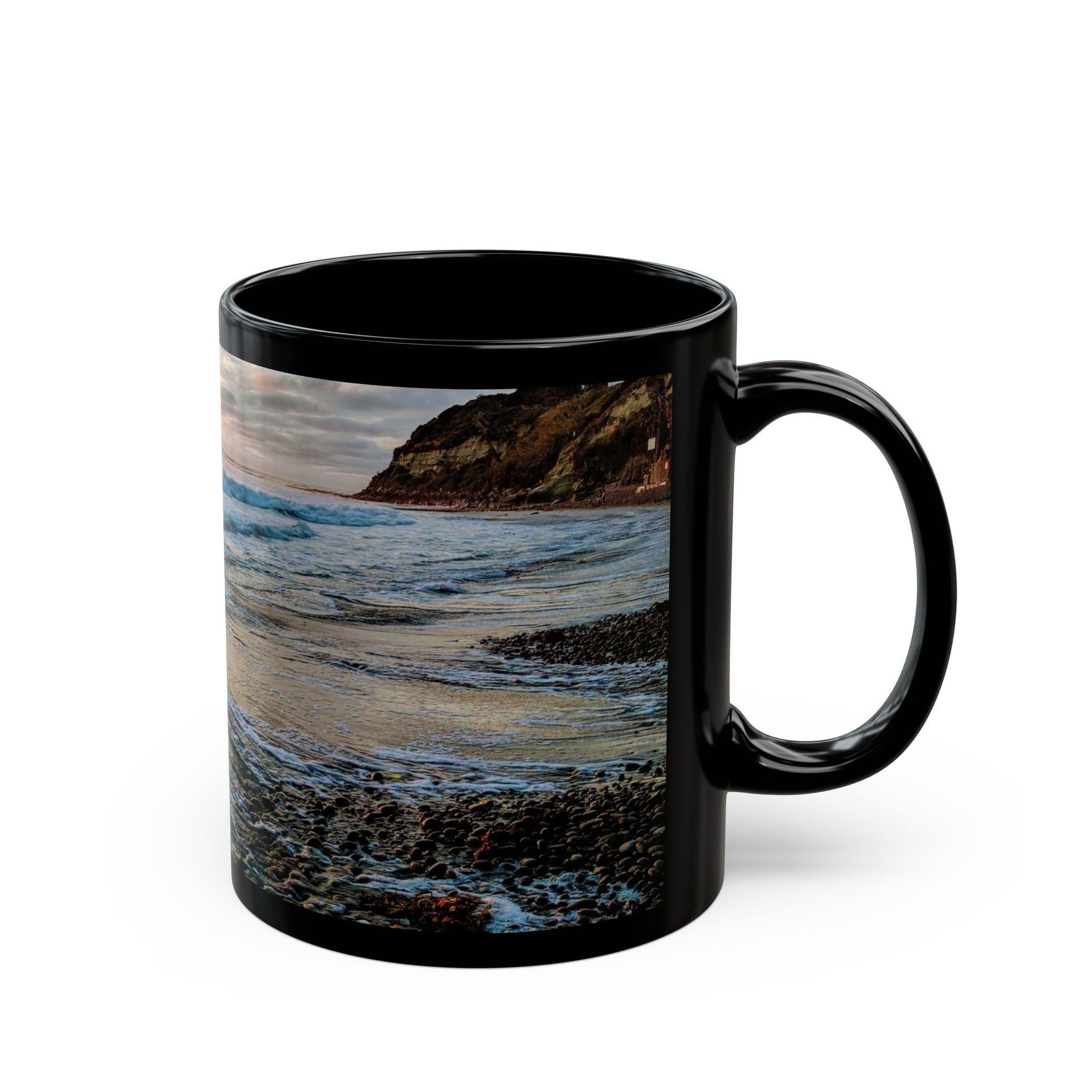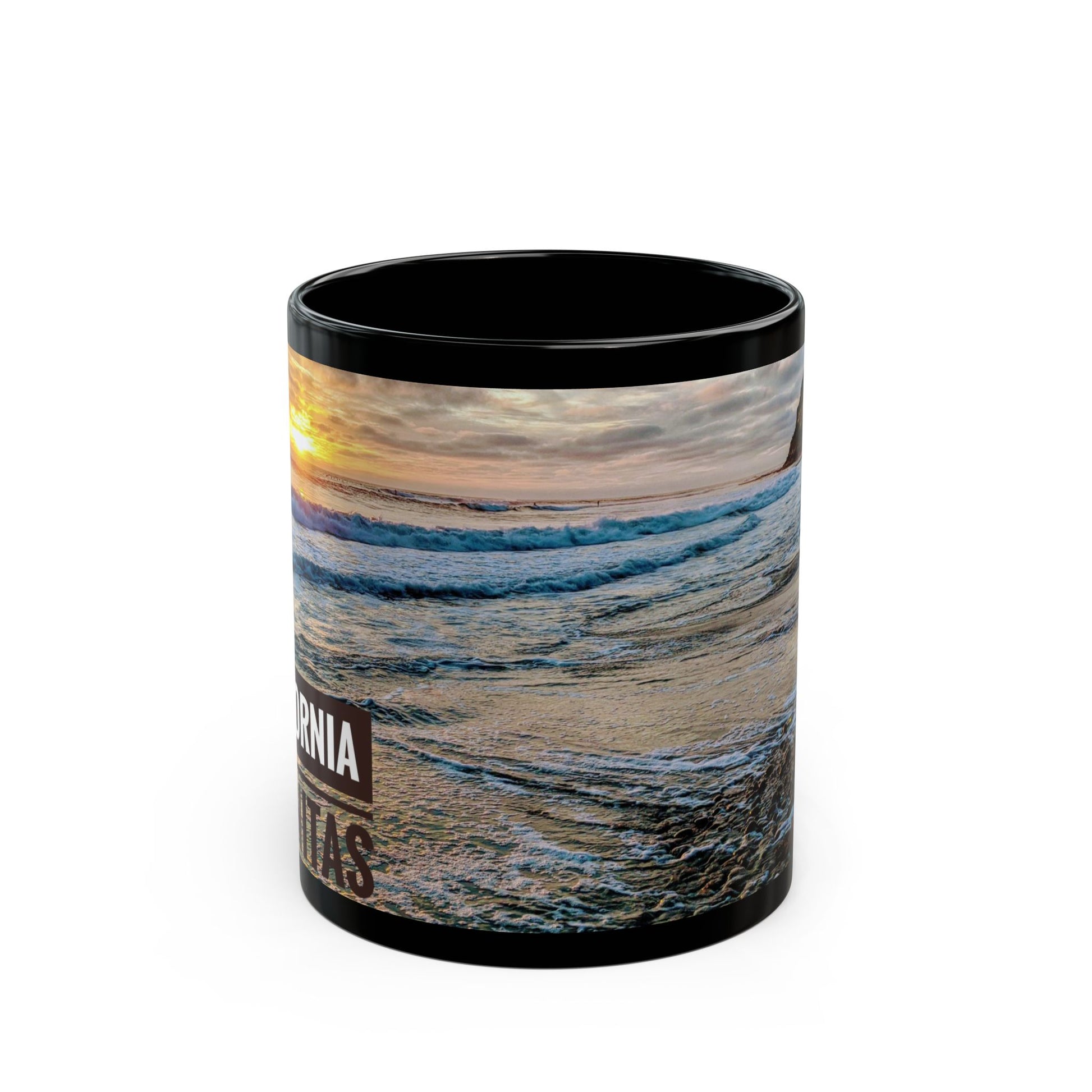 This ceramic mug captures the serene and harmonious 'Swamis Vibe' with a design inspired by the beautiful surfing beach in Encinitas, California. Perfect for coffee or tea lovers looking to start their day with a peaceful coastal feel.