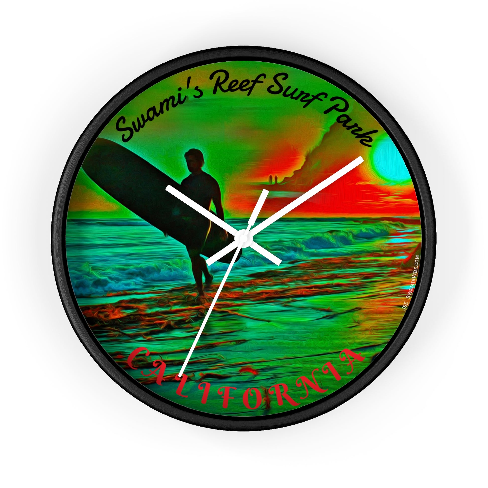 Swamis Vibe Encinitas California JSE Designs Swamis Surfing Sunset Wall Clock #3. Custom JSE Photo Pop Art Design