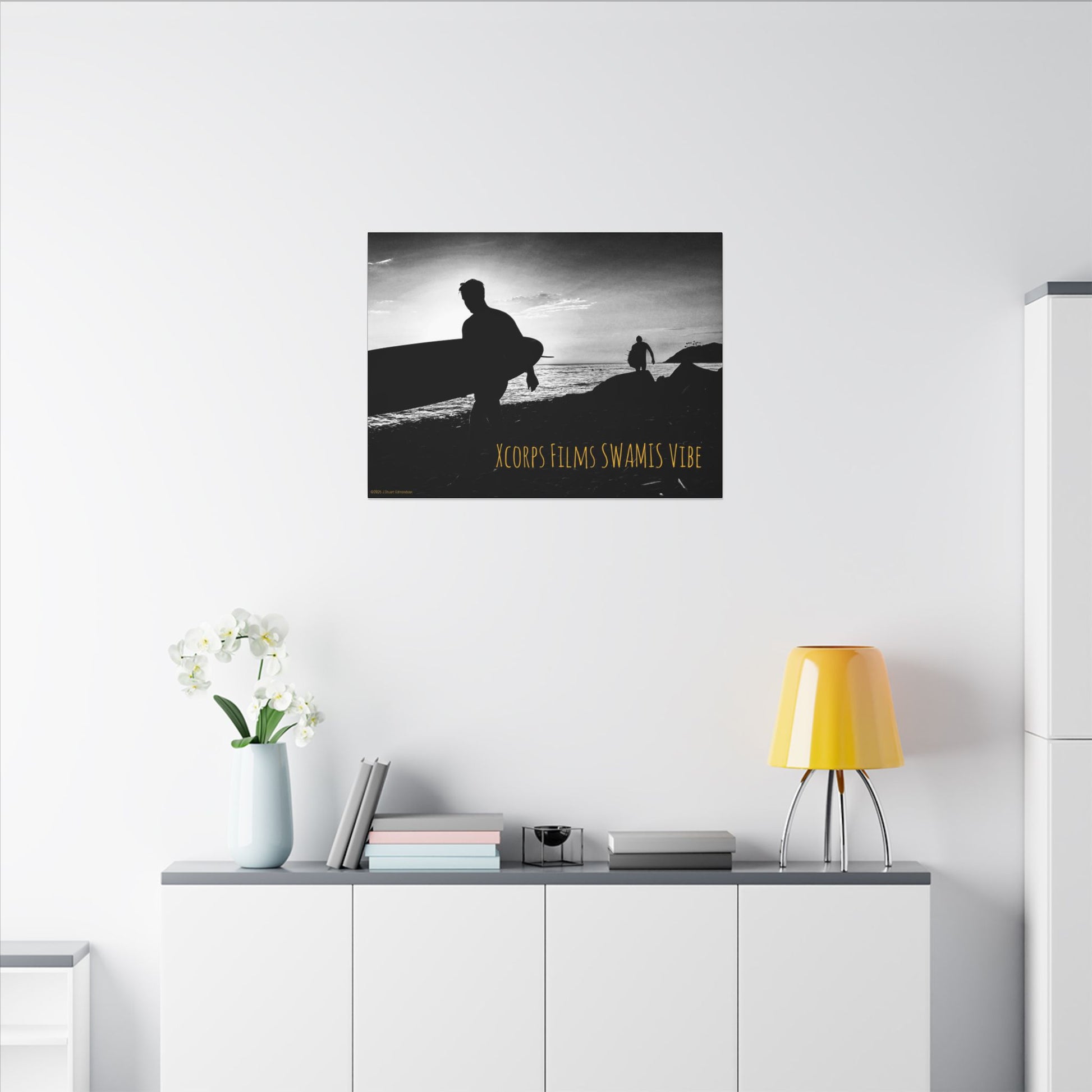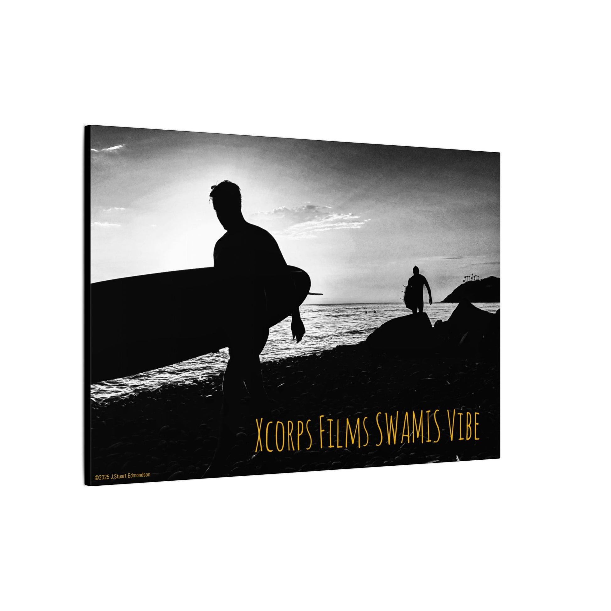 Swamis Vibe Encinitas California JSE Photograph #1029 Swamis Surfers Silhouettes Surfing Art Print, Black-and-White Canvas Wall Decor, Beach Vibe, Surf Culture Home Decoration, Gift for Surfers, Beach Lovers