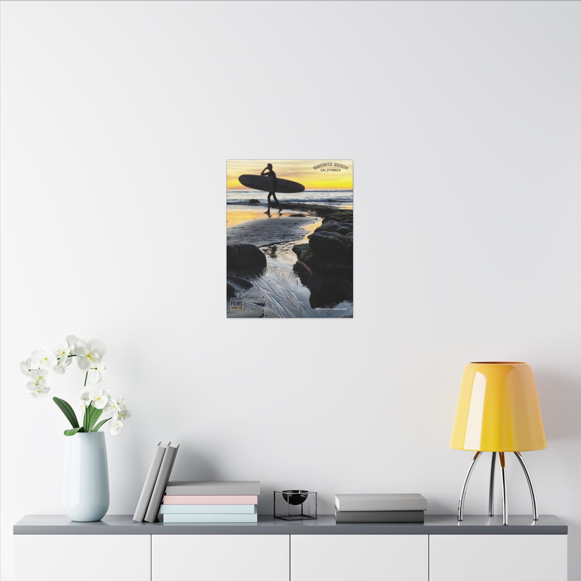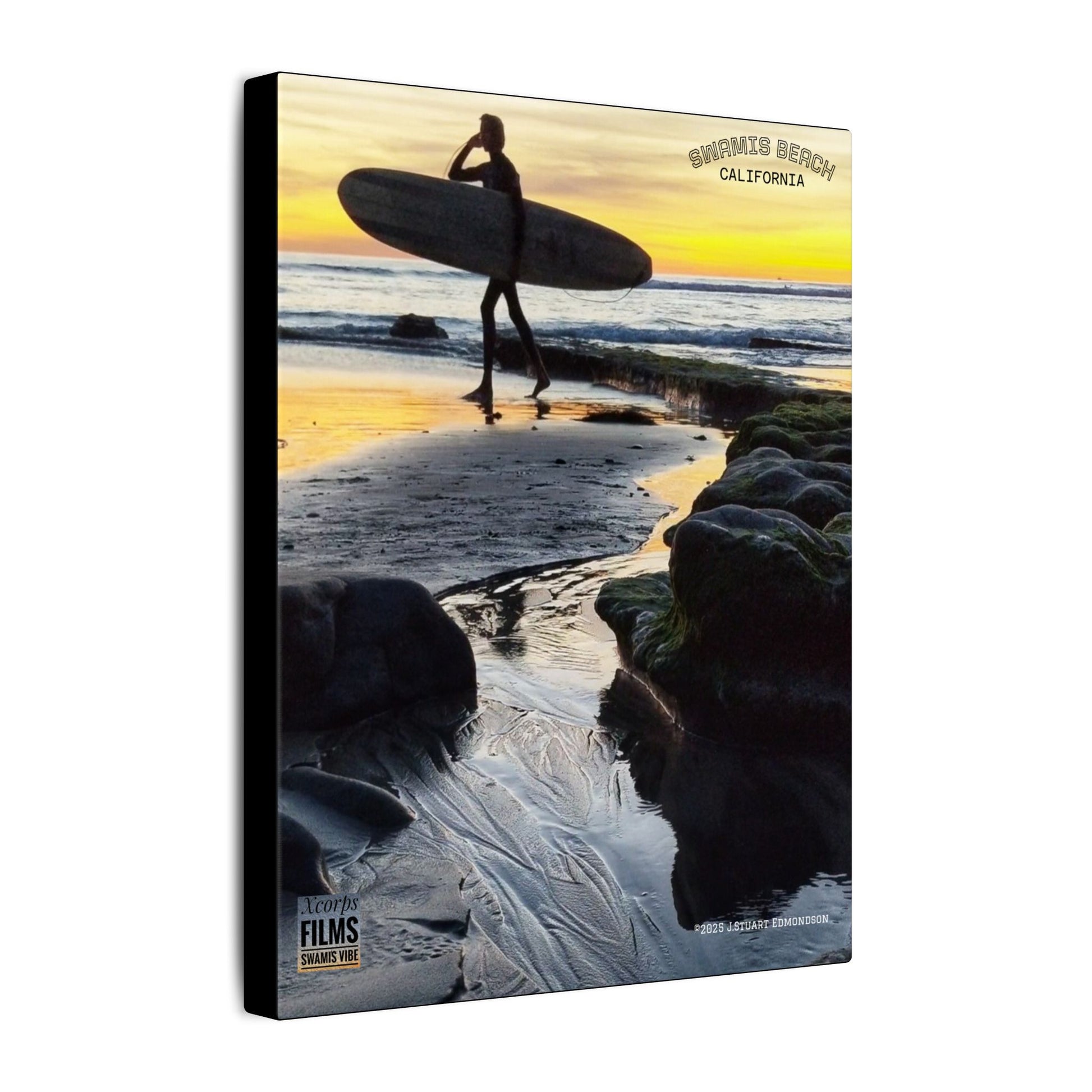 Add a touch of coastal charm to your home or office decor with this unique piece that captures the essence of surfing and sunsets at Swamis beach. Ideal for beach house decor, surf-themed rooms, or as a gift for surfers and California dreamers. See the coastal lifestyle year-round with this Swamis-inspired canvas print.