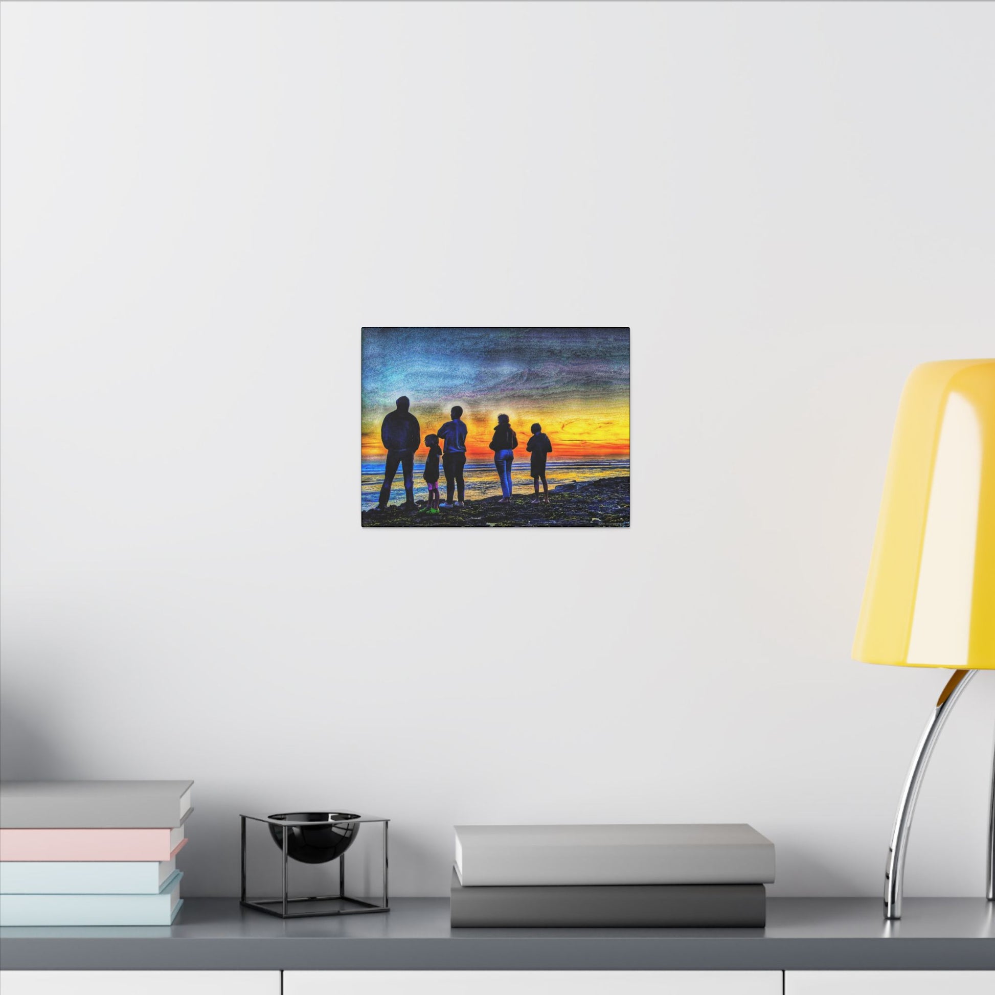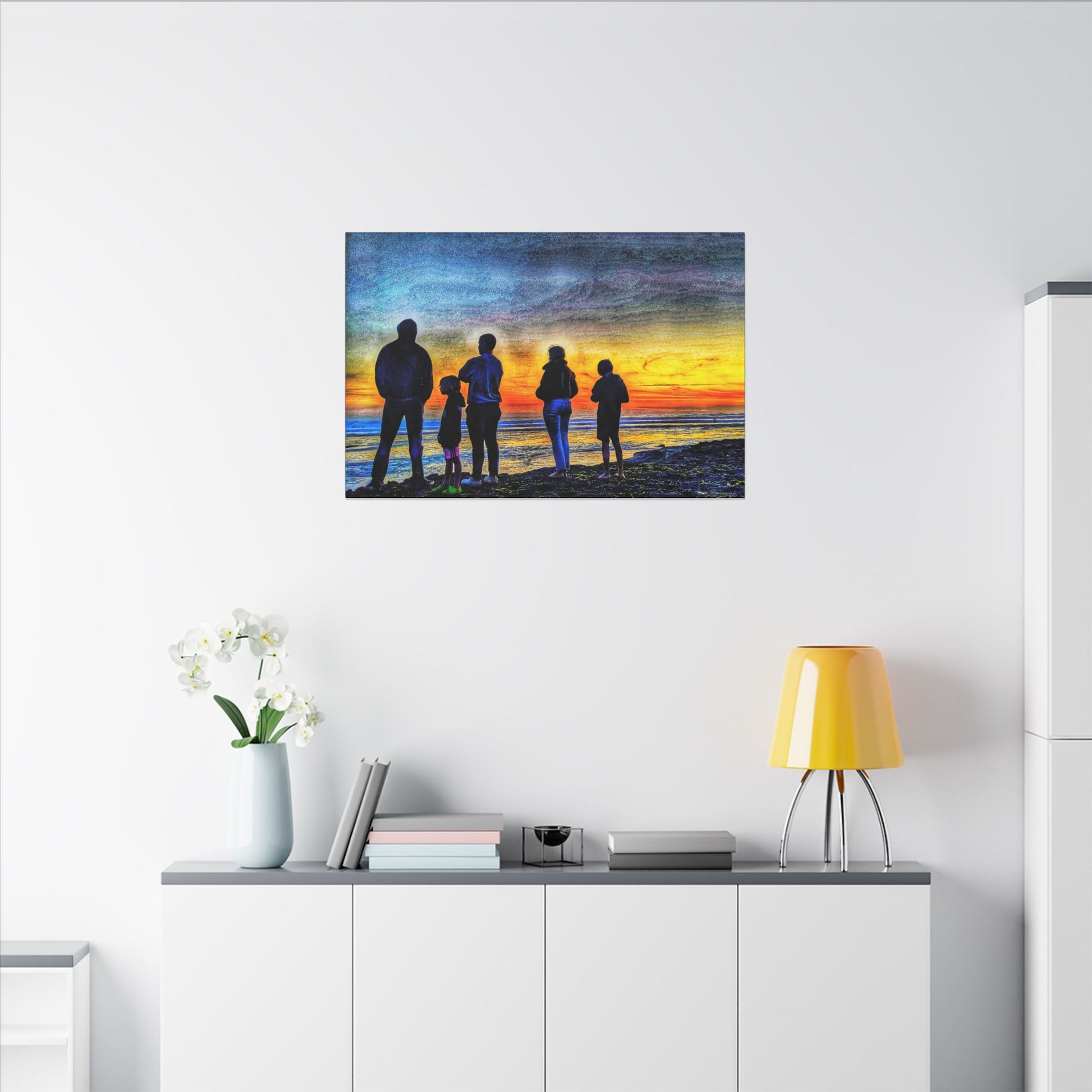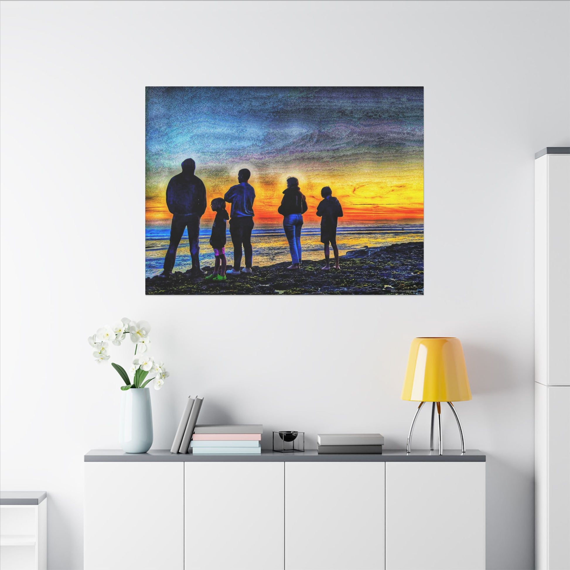 Swamis Vibe Encinitas California JSE Photograph #131 Swamis Low Tide Tourists Sunset Family Silhouette Canvas Wall Art, Stretched Canvas, Home Decor for Living Room, Gift for Parents, Family Portrait, Nature Art
