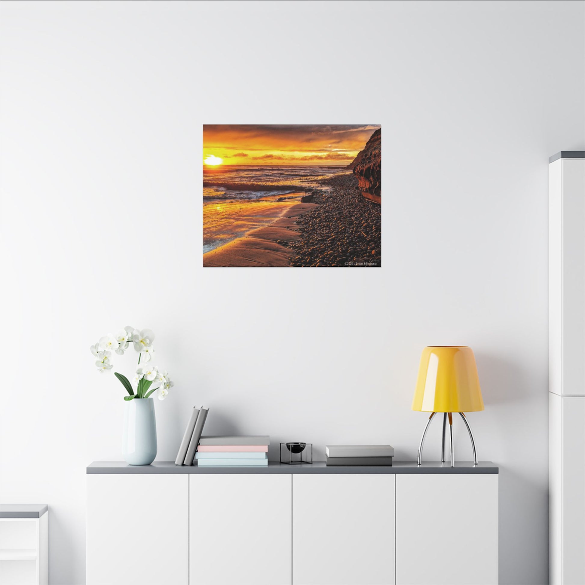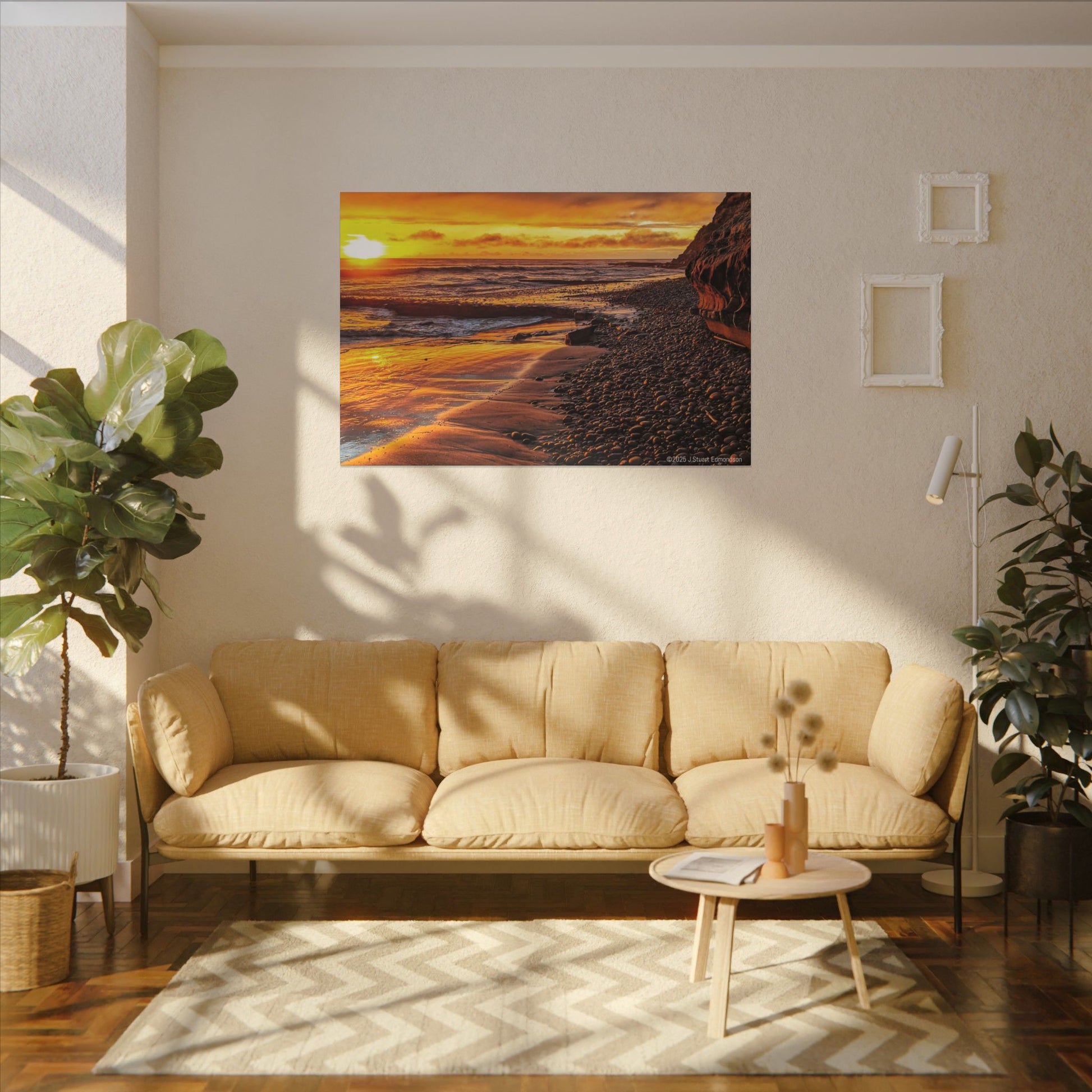 Experience the harmonious 'Swamis Vibe' with this stunning canvas print featuring Swamis Surf Park multi textured beach sunset in California. Perfect for surf enthusiasts and nature lovers, this eco-friendly canvas is not only sustainable but also vibrant and durable.