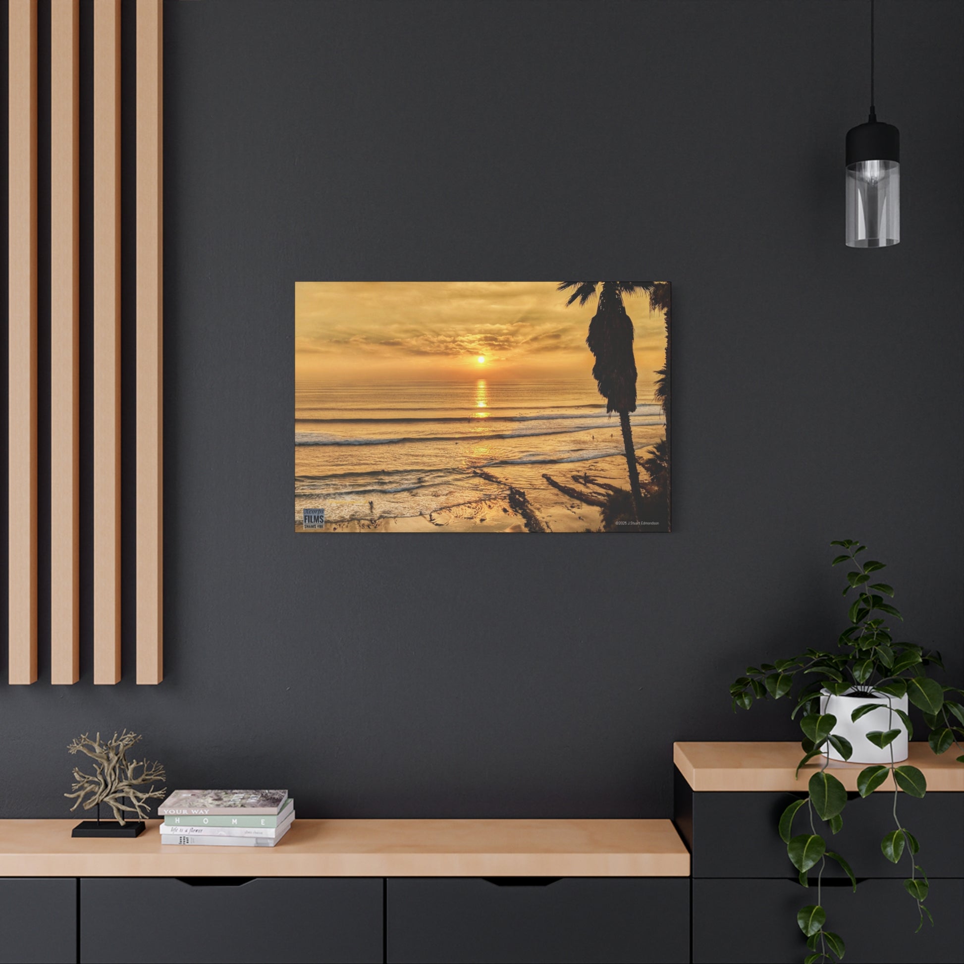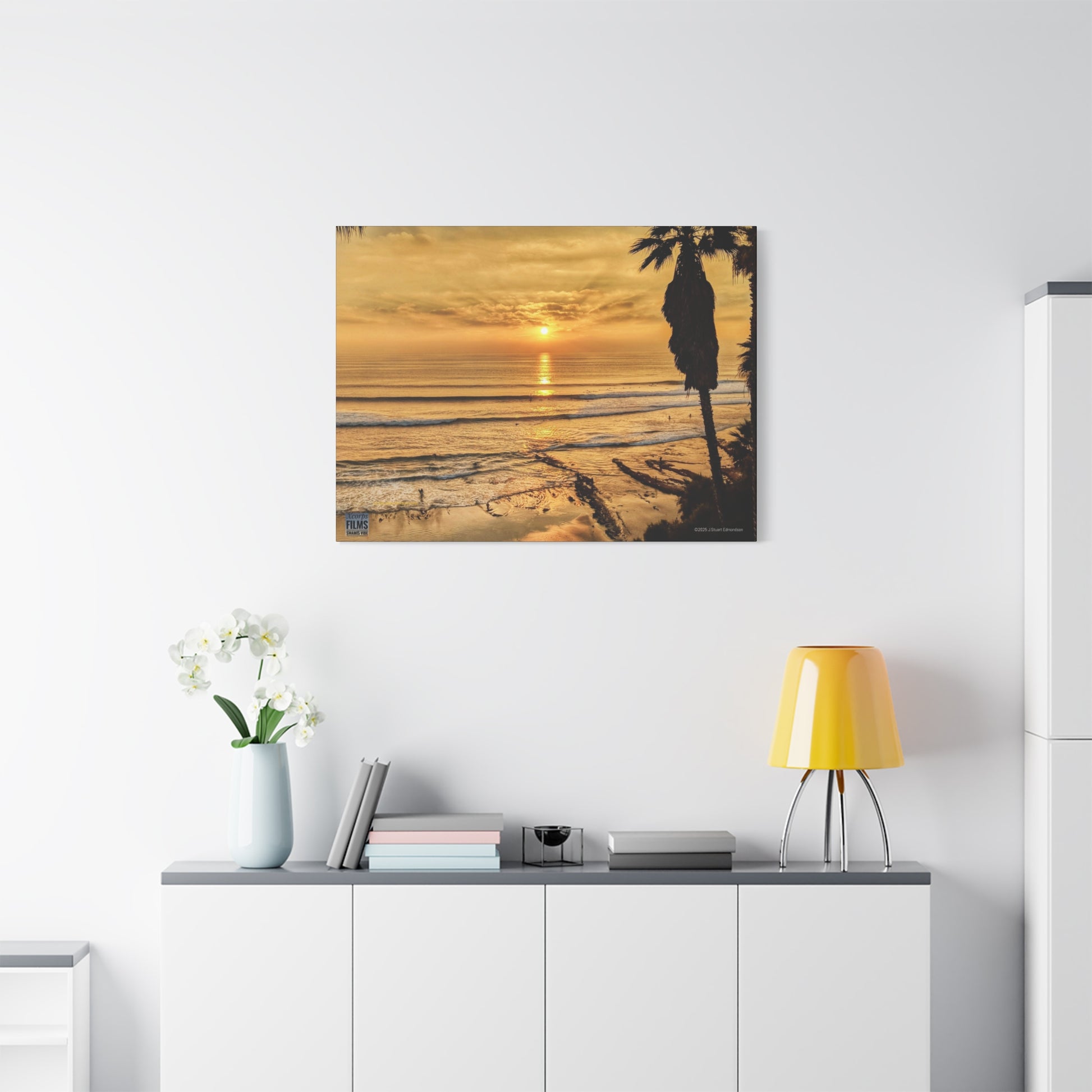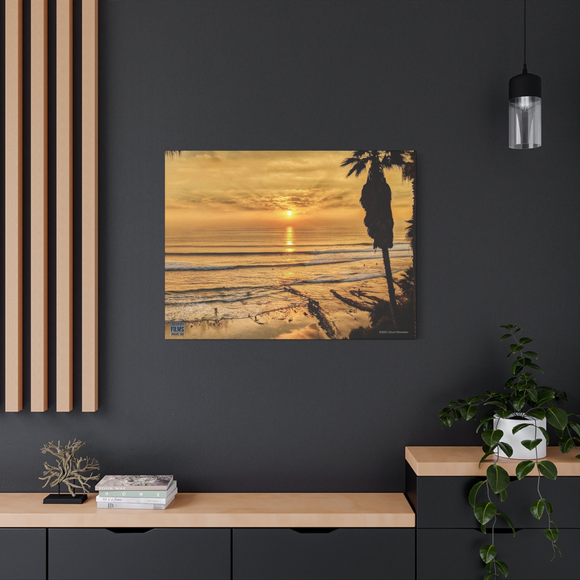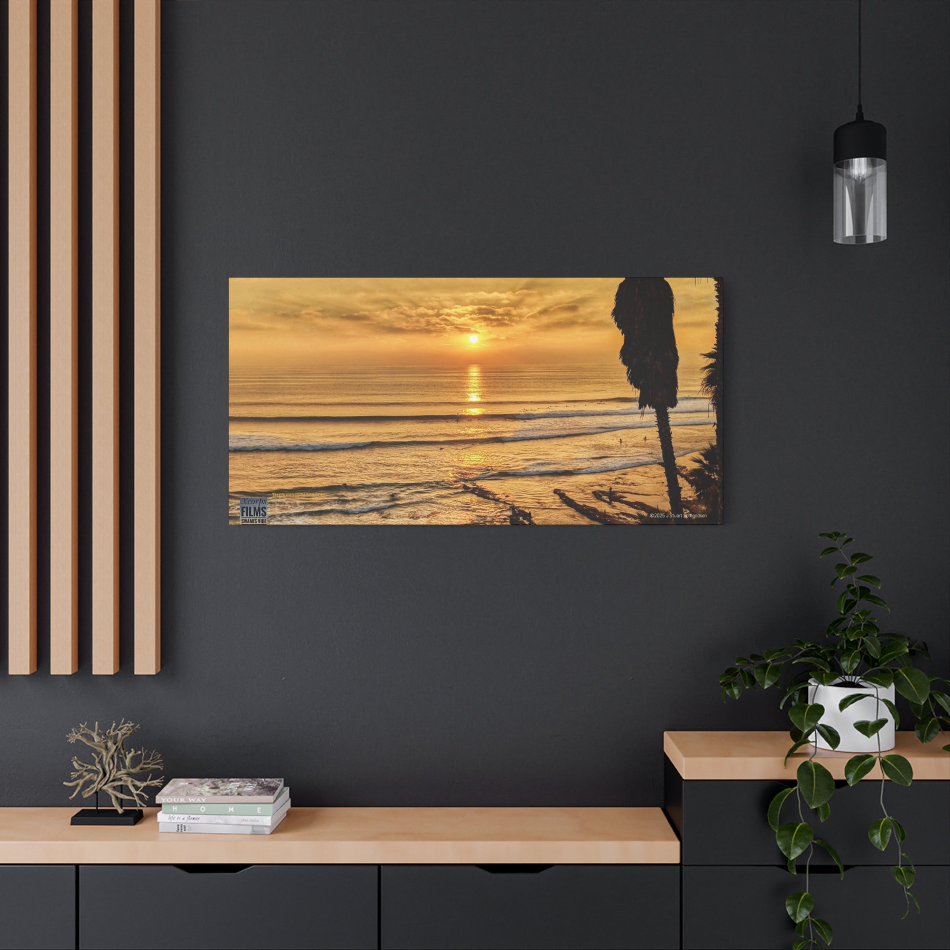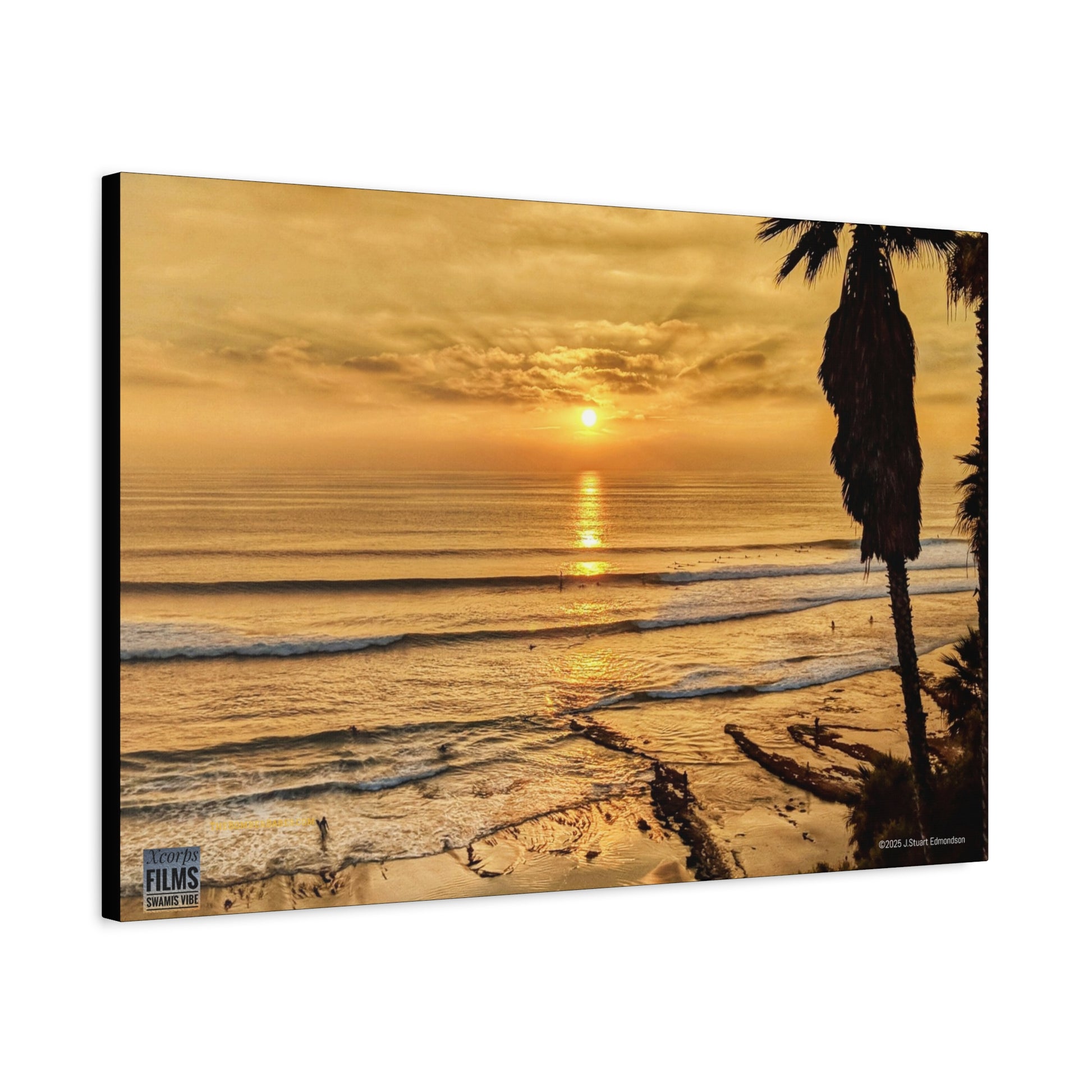 Swamis Vibe Encinitas California JSE Photograph #339 Swamis Sunset Gold Stretched Canvas Art, Sunset Beach Decor, Coastal Wall Art, Ocean Landscape Print, Tropical Home Decoration, Beach Lover Gift