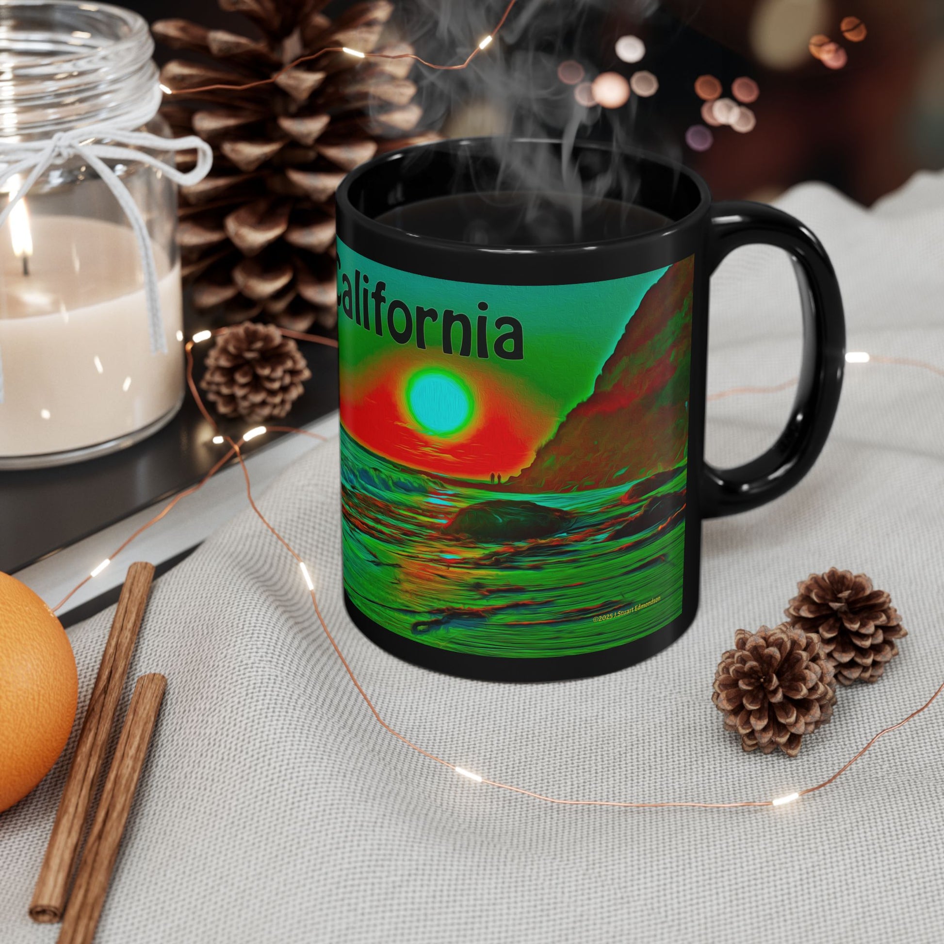 Swamis Vibe Encinitas California JSE Xcorps Films Designs #8. Swamis Surfer's Paradise Black Mug - Perfect for Coffee Lovers, Beach Vibes, Gifts for Him/Her, Summer, Surfing Enthusiasts, California