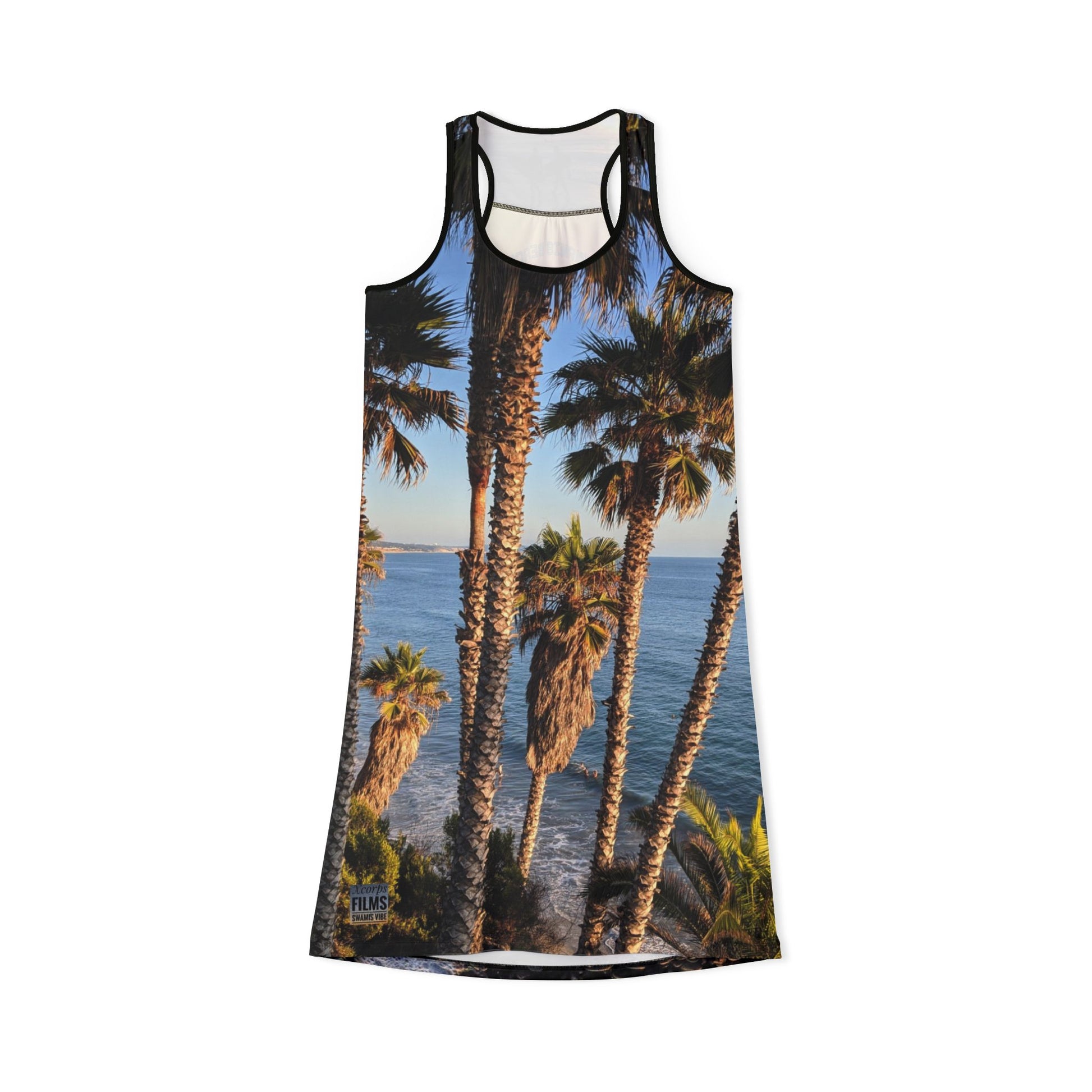 Swamis Vibe JSE Cali Designs Racerback Sports Dress Swami's Vibe Surf Park Collection - Palm Grove Surfers Sunset #333 Tropical Beach Racerback Dress, Vacation Outfit, Boho Style Dress, Summer Dress, Casual Summer Wear, Beachwear
