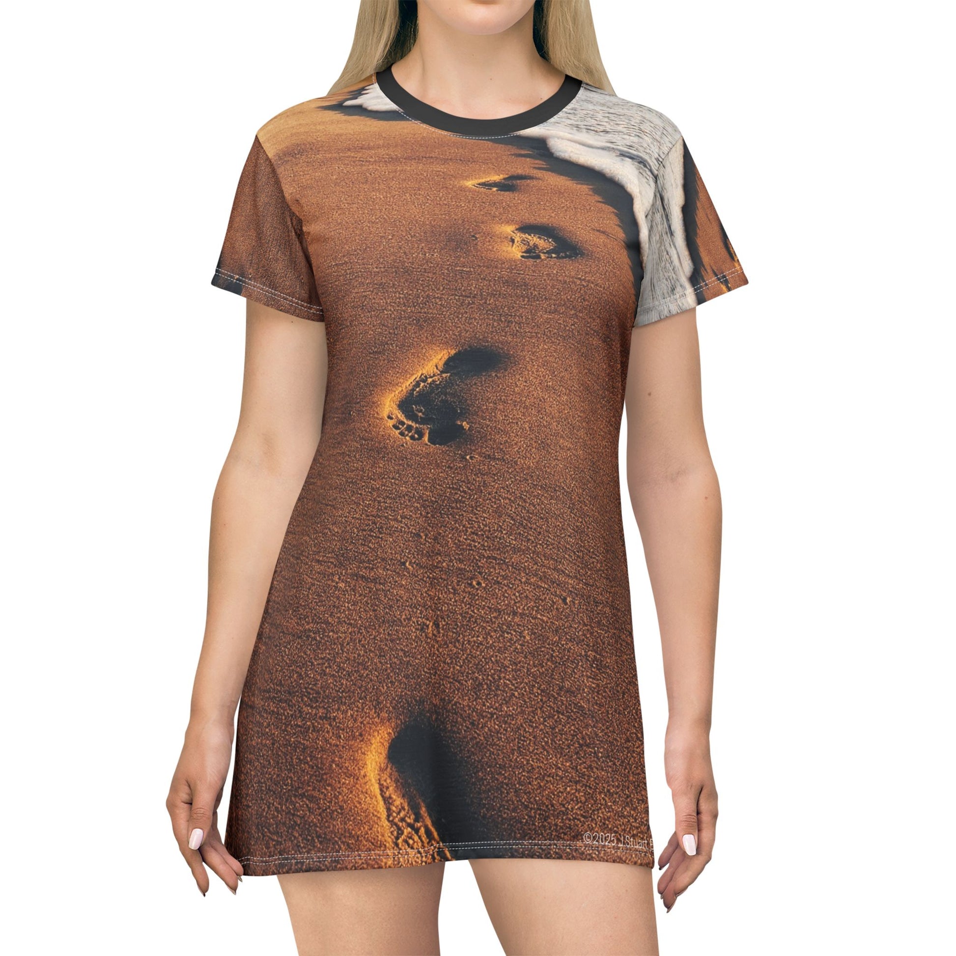 Swamis Vibe Coastal T-Shirt Beach Dress #5. Footography Artistic Nature T-Shirt Dress Beach Footprint T-Shirt Dress, Relaxed Summer Style, Casual Wear, Beach Vacation Outfit, Unique Gift Idea, Comfortable Dress