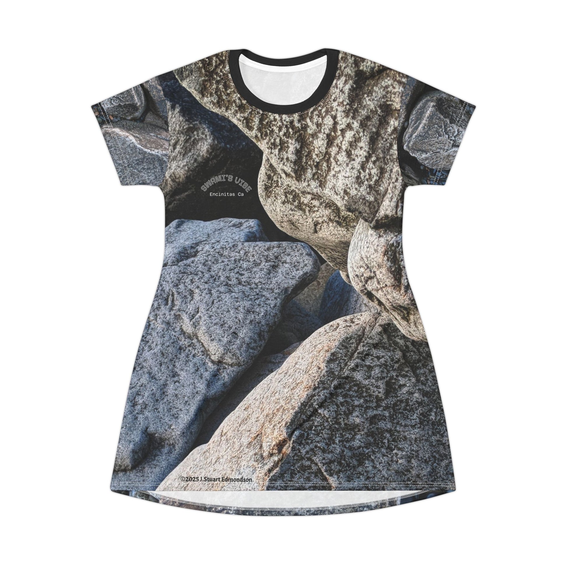 Swamis Vibe Stone T-Shirt Beach Dress #8. Swamis Melted Rocks Artistic Nature T-Shirt Dress Nature-Inspired T-Shirt Dress, Rock Pattern Casual Dress, Summer Outfit, Beach Cover-Up, Eco-Friendly Apparel