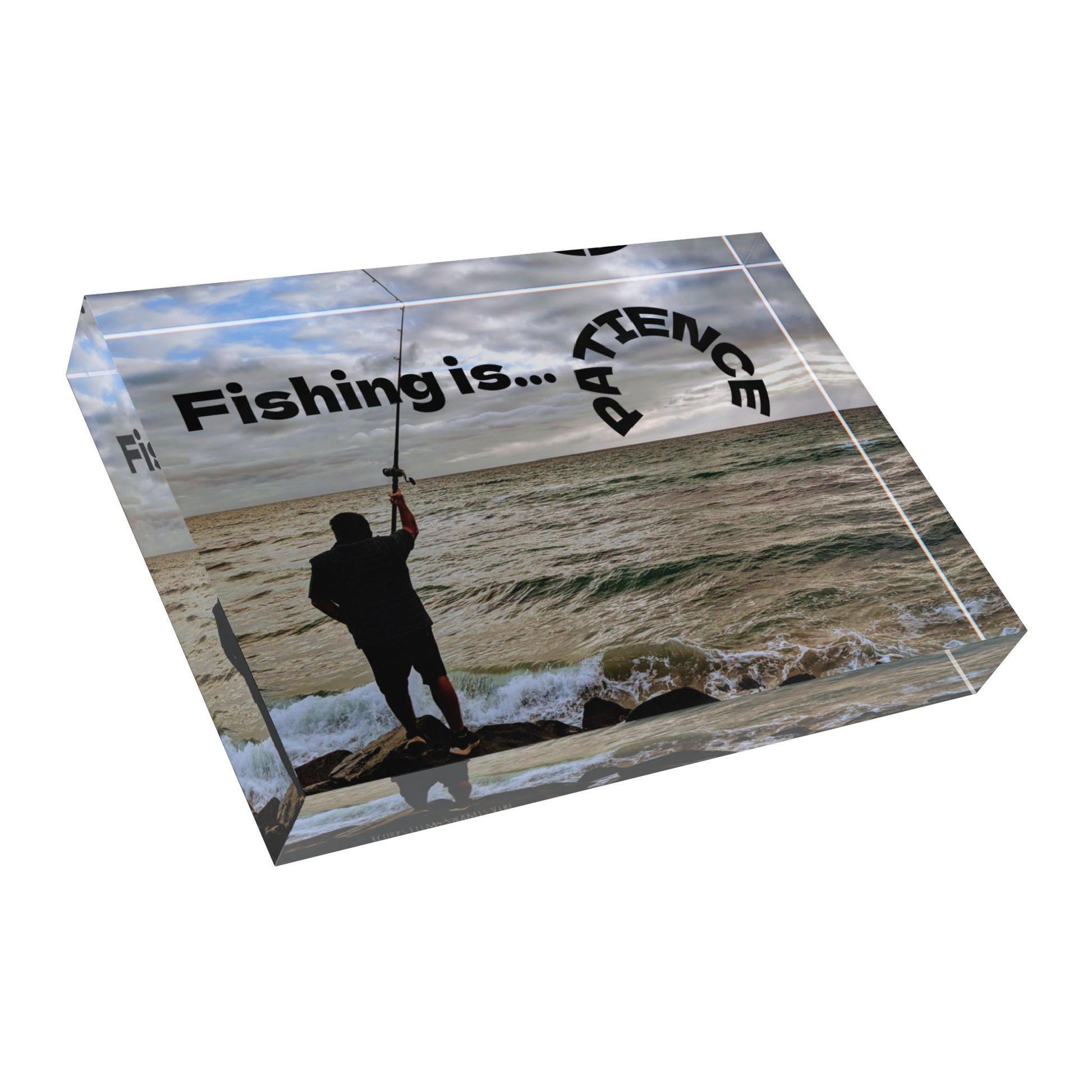 Swamis Vibe Surf and Sunsets 3D Photo Blocks Fishing Is Patience. Ocean Fishing Photo Block, Home Decor, Gift for Fisherman, Coastal Wall Art, Personalized Picture Display, Inspirational Art